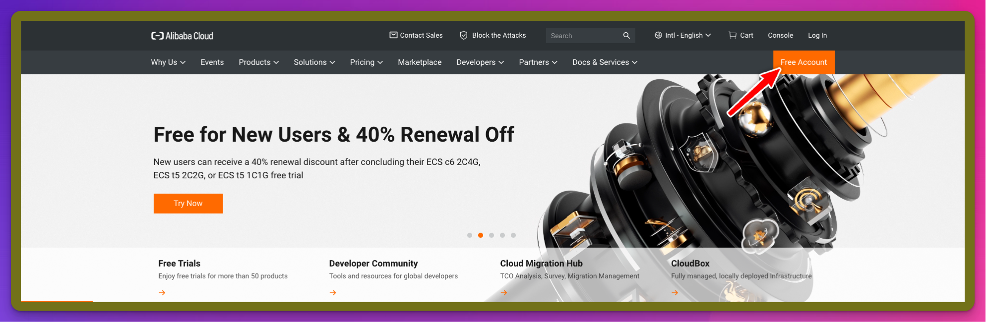 Step 1: Go to the Alibaba Cloud website and click on the "Free Account" button.