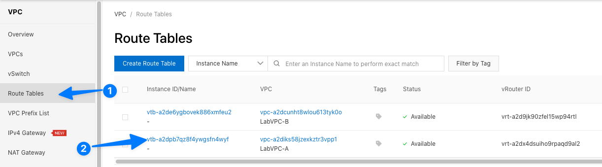 - Launch another ECS instance in LabVPC-B's VSwitch.